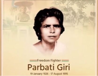 Born on January 19, 1926 at Samlaipadar village in Bargarh district, Parbati Giri joined the Quit India Movement at the age of 16 years after being influenced by Mahatma Gandhi and she was imprisoned for two years.