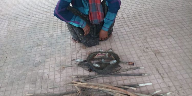 The accused has been identified as Kedar Swain of Dakarabadi village. Forest Department officials also seized an 800-metre electric wire, 25 wooden sticks, 25 glass pieces and some plastic from his possession during the raid.