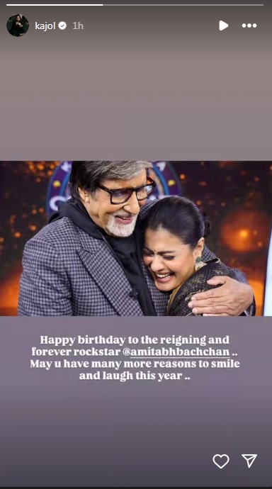 Kajol also dropped a rare photo with Amitabh and wrote, “Happy birthday to the reigning and forever rockstar @SrBachchan .. May u have many more reasons to smile and laugh this year.”