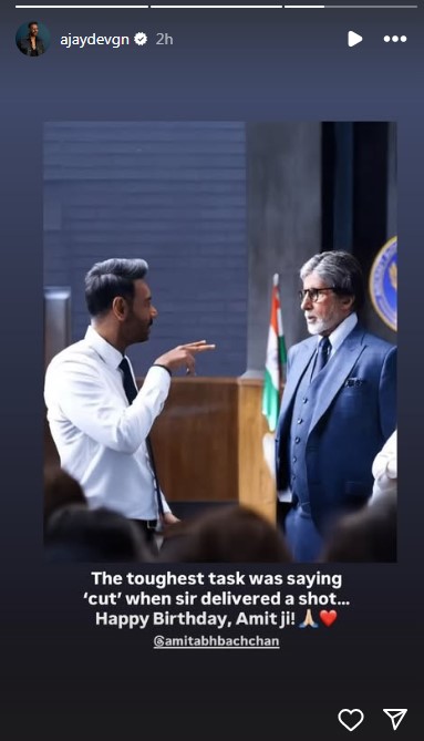 Recalling his experience of directing Big B in Runway 34″, Ajay Devgn penned, “The toughest task was saying ‘cut’when sir delivered a shot…Happy Birthday Amit Ji (Folded hands and red heart emoji) @SrBachchan.”