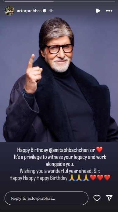 Big B’s Kalki 2898 AD co-star Prabhas compiled a heartfelt wish saying, “Happy birthday @amitabhbachchan sir. It’s a privilege to witness your legacy and work alongside you. Wishing you a wonderful year ahead, Sir. Happy Happy Happy Birthday. (sic).”
