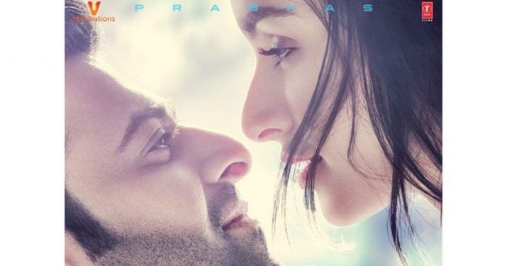 The poster captures a romantic moment between Shraddha and Prabhas.
