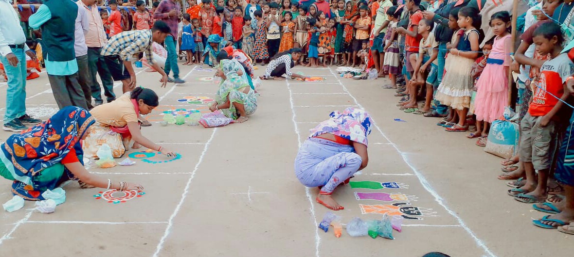 Women drawing jhotis on a village street at Chhanua Hatapadar in Balasore during celebration of Utkaliya Jhoti Divas