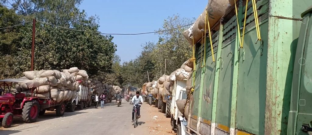 Farmers also alleged that CCI is not procuring cotton in time and as a result, carts, trucks, tractors laden with cotton lie parked for days together on either side of the road from Kesinga College to the spinning mill.