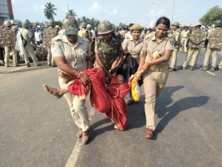 The farmers continued to march on to the site of the convention organised with the support of the Naba Nirman Krushak Sangathan (NNKS). Hundreds of farmers were detained by the police.