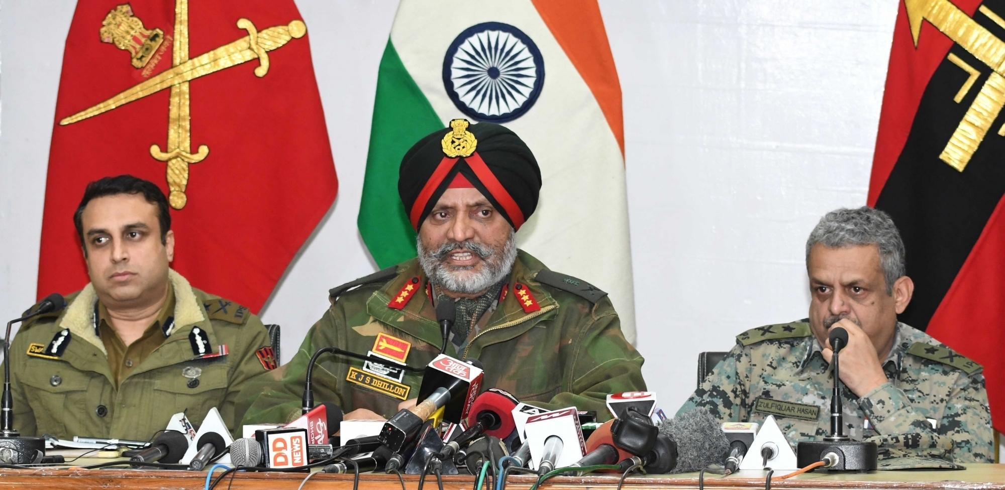 ![Srinagar: Lt Gen K.J.S. Dhillon, Corps Commander of the Srinagar-headquartered 15 Corps along with IGP Kashmir SP Pani and CRPF IG Zulfiquar Hasan addresses a joint press conference in Srinagar, Feb 19, 2019. (IANS) [Representative Image]](https://www.orissapost.com/wp-content/uploads/2019/03/Main-Pulwama-attack-conspirator-eliminated-Army-750x375.jpg)