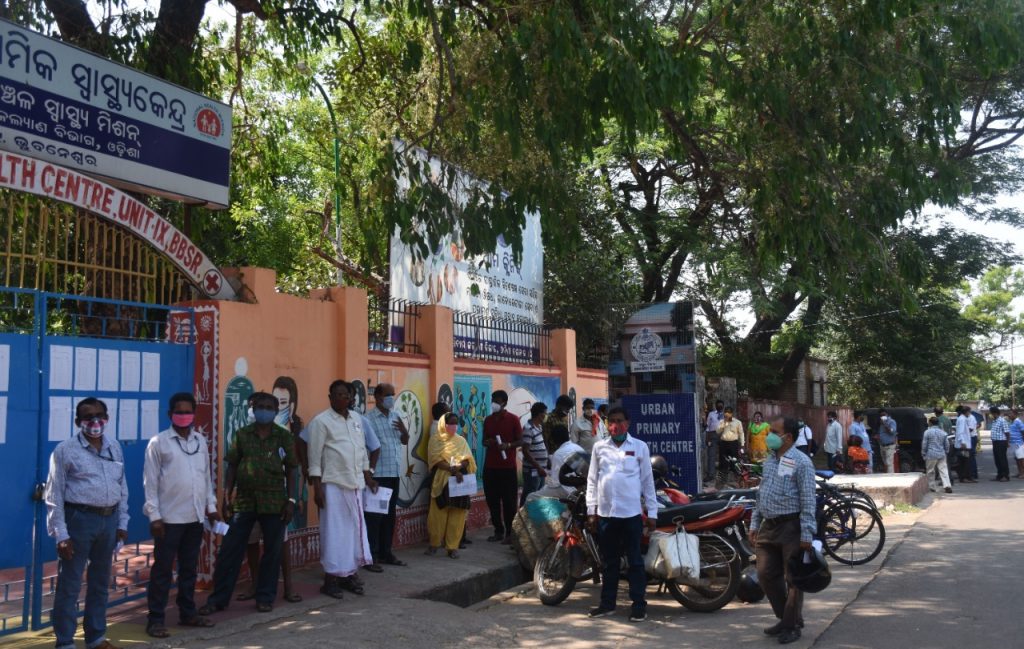 People queue up in large numbers for getting the jab at a health centre in Unit-IX