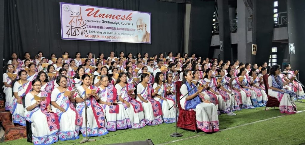 Rourkela: A function for the recital of Rabindra Sangeet titled ‘Unmesh’ to commemorate the 163rd birth anniversary of Gurudev Rabindranath Tagore was held at Bhanja Bhawan Auditorium in Steel City, Sunday. The audience was enthralled by the exhilarating performance of quality and sacredness of the concert and expressed their appreciation throughout the event.