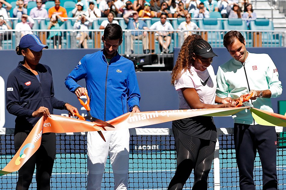 Following a ceremonial ribbon cutting earlier in the day under sunny skies involving Serena Williams, Roger Federer and world number ones Naomi Osaka and Novak Djokovic, action got underway with three-time Miami champion Victoria Azarenka defeating Dominika Cibulkova 6-2 3-6 6-4 to christen the venue.