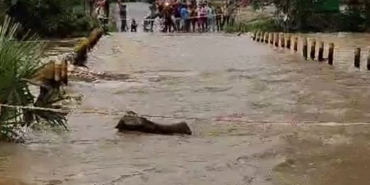 Malkangiri/Kalimela: Crossborder road communication from Odisha to Andhra Pradesh and Telangana was disrupted here after rainwater over three feet high overflowed on Kangurukonda bridge in Malkangiri district following low pressure triggered heavy rainfall, Friday. The district has recorded 83.8mm rainfall. Rain has been lashing the district since Friday morning and led to rise in river water levels in Poteru, MV-90, MV-96, Kangurukonda, Kanyashram, Pangam, Tarlakota areas in the district.