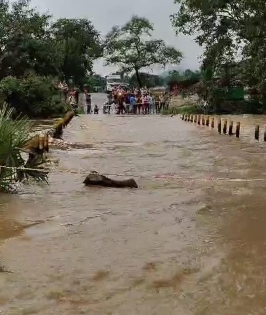 Malkangiri/Kalimela: Crossborder road communication from Odisha to Andhra Pradesh and Telangana was disrupted here after rainwater over three feet high overflowed on Kangurukonda bridge in Malkangiri district following low pressure triggered heavy rainfall, Friday. The district has recorded 83.8mm rainfall. Rain has been lashing the district since Friday morning and led to rise in river water levels in Poteru, MV-90, MV-96, Kangurukonda, Kanyashram, Pangam, Tarlakota areas in the district.