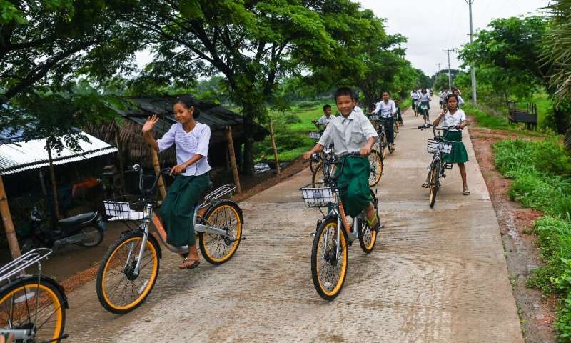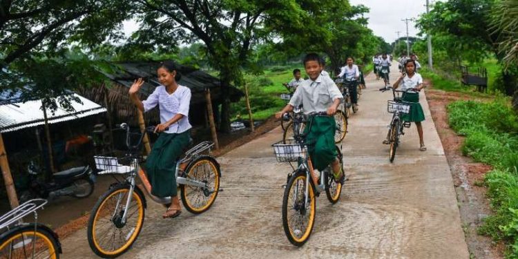 Thae Su Wai will no longer need to trudge 10 kilometres (six miles) for two hours to and from lessons, she told AFP, beaming. “I’ll have more time to study and play with friends,” she said, as she excitedly wheels away her new bicycle at Nhaw Kone Village school near Yangon.