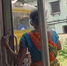 The short clip opens with the woman, dressed in a saree, clinging to the door’s handle as the train speeds along the tracks. In her other hand, she tightly grips a stone. As another train rushes past in the opposite direction, she suddenly hurls the stone toward the driver’s cabin — the spot where the loco pilot sits.
