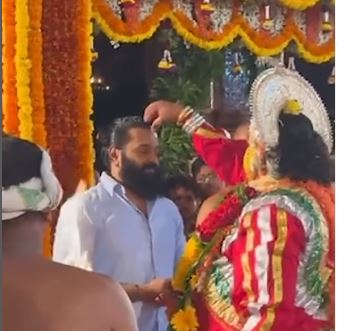 Taking a break from the preparations of Kantara: Chapter 1, Rishab Shetty and his wife Pragathi attended the Buta Kola.