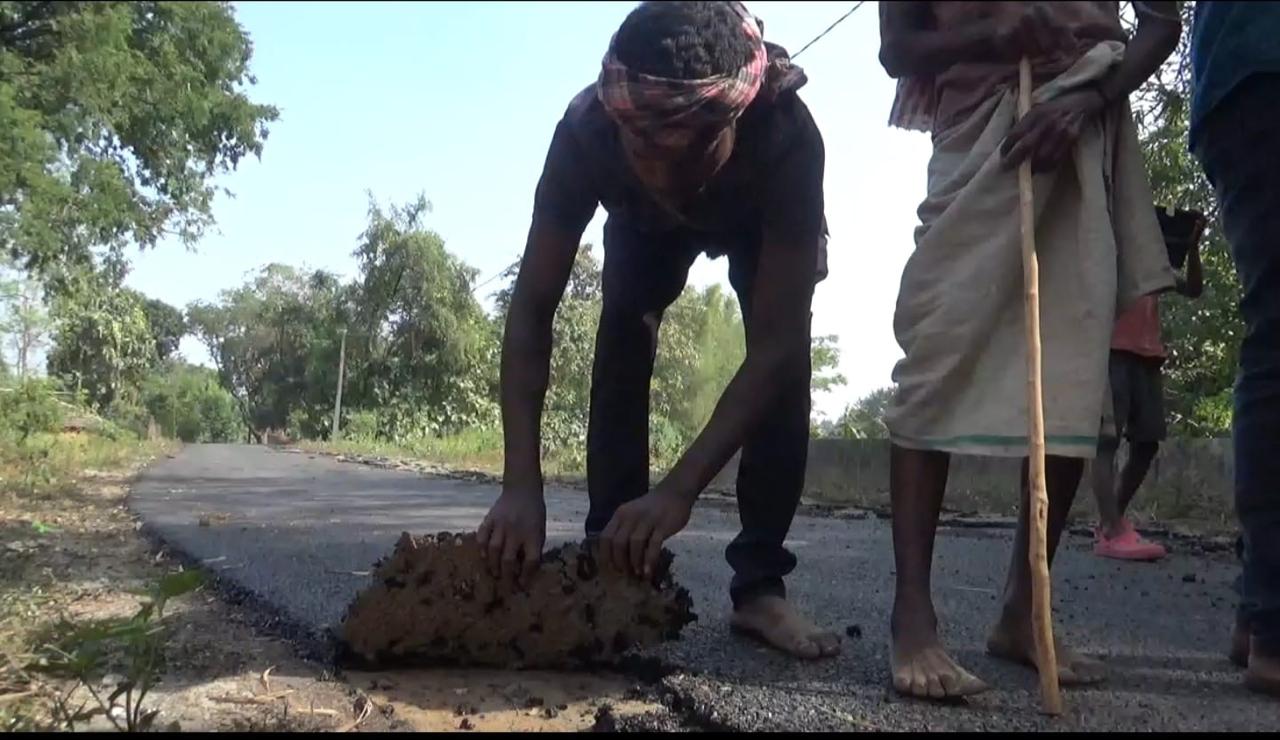 Locals say the work executed by a Baripada-based special-class contractor was completed hastily with improper metal layering using low-quality materials. Villagers alleged the asphalt layer began coming off merely five days after construction.