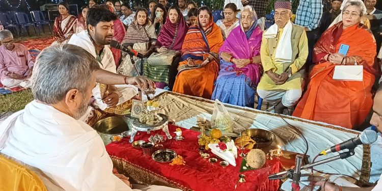 Dhenkanal: The Rudrabhishek of Lord Somnath Jyotirlinga was performed at the Dhenkanal Palace Monday evening. As advised by spiritual leader Sri Sri Ravi Shankar, the ceremony was organized in Odisha for the first time at the palace, replicating the ritual of the revered Somnath temple in Gujarat.