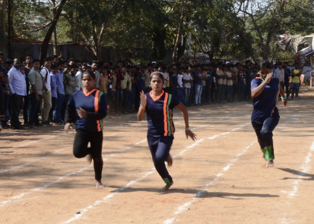 Girls participate in a sprint event, organised at the Government ITI premises in Berhampur, Monday
