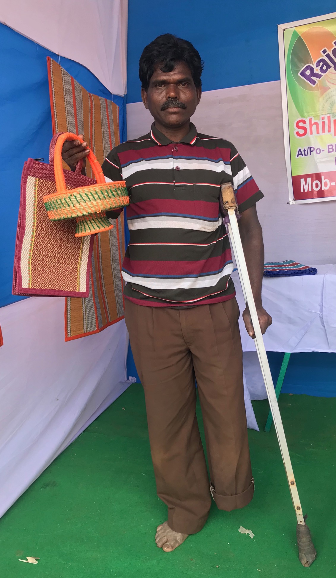 Baripada: Samaray Murmu, a differently-abled person of Bhugudakata under Kuliana block in Mayurbhanj, is the one of those who do not feel defeated in life. He leads his life selling various usable and decorative items of sabai grass.