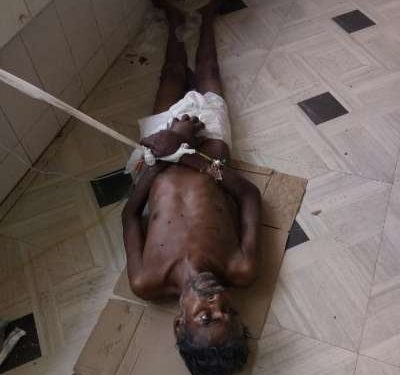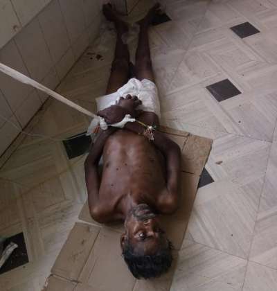 Cuttack: A destitute patient was found lying on the floor with his hands tied in the neurology department of SCB Medical College and Hospital, here Saturday.