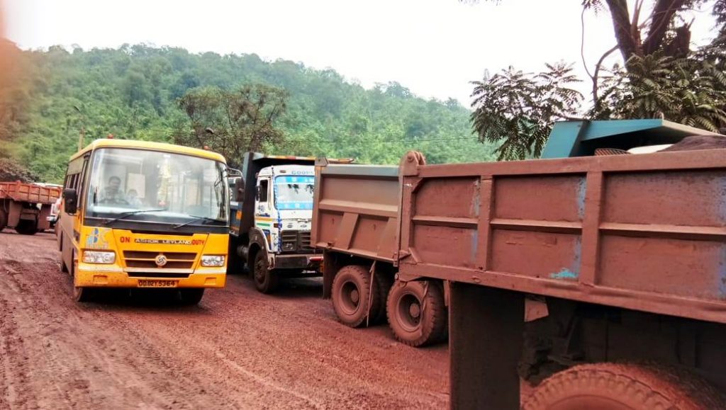 Minerals are transported to Essar Steel plant day and night. As a result, school kids of Handibhanga, Jamupani, Naya Hutting and other nearby villages face problems in commuting to schools. Regular transport of minerals has taken a heavy toll on the Kalimati-Dubuna Road, which is in replete with potholes and craters. Locals and guardians lamented that due to traffic jams, their kids have to walk to school.