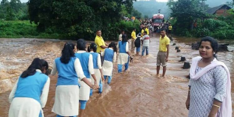 Rainwater from upland hilly areas flowed into Jarada creek, leaving a hume-pipe bridge at Pitanali under water. This disrupted communication.