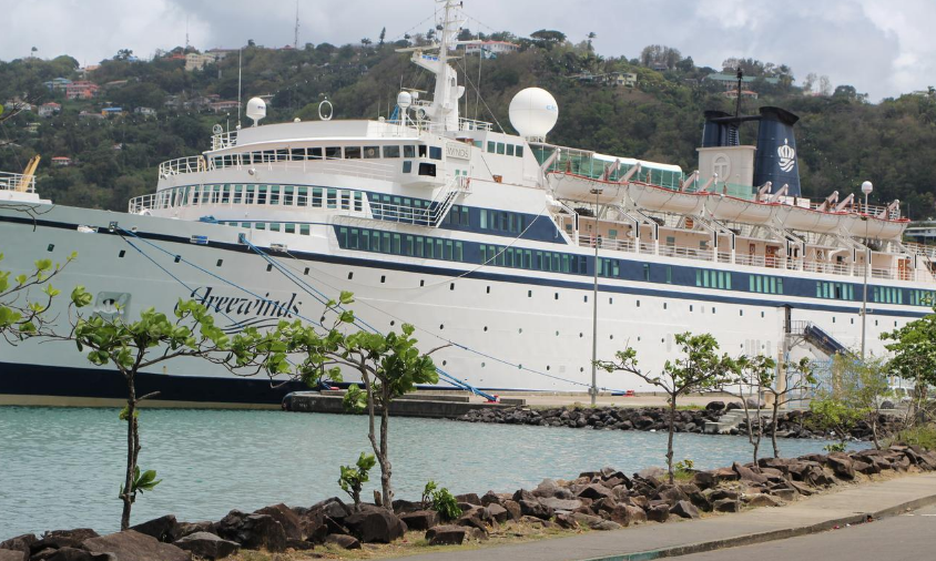 SMV Freewinds docked under quarantine from a measles outbreak in port near Castries, St. Lucia, Thursday