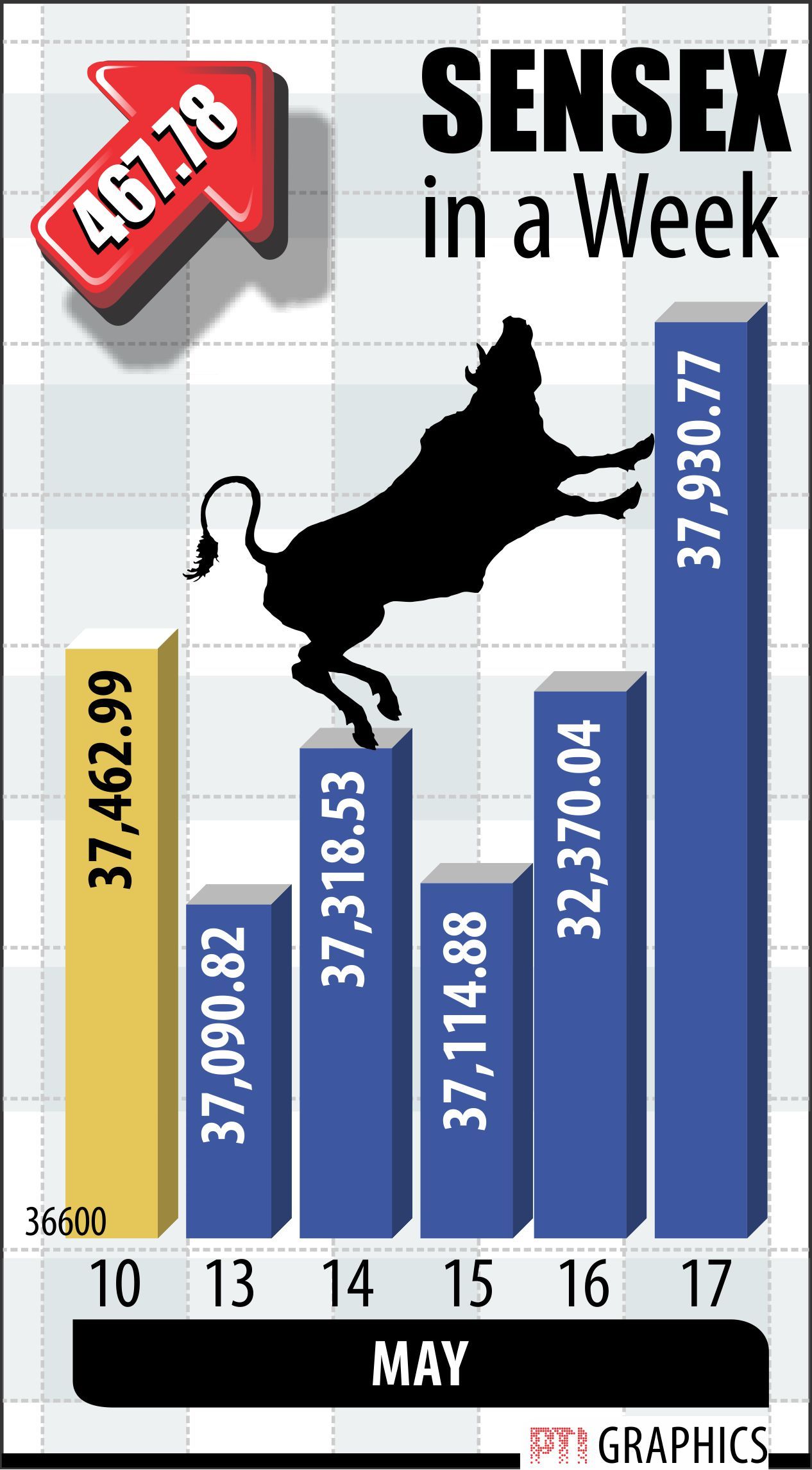 Mumbai: Indian equity benchmarks extended gains and the S&P BSE Sensex surged over 500 points and NSE Nifty 50 Index climbed above psychological level of 11,400 ahead of exit polls due after the last phase of voting for general elections May 19. Equity markets rose sharply on anticipation of good news among the market participants on the election front, analysts said. Gains were led by banking and financial sector heavyweights like HDF Bank, HDFC, Kotak Mahindra Bank and ICICI Bank.