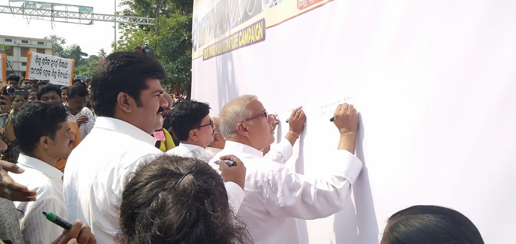 The signature campaign, which was organised by Childline working under the Indian Society for Rural Development (ISRD), was attended by MP Chandrasekhar Sahu, who was also the chief guest, MLA Bikram Kumar Panda and Ex-MLA Dr Ramesh Chandra Chyau Patnaik—the guests of honour. Chairman of the Berhampur Development Authority (BDA), Subash Maharana, ISRD Associate Director Prabhu Prasad Patra and Sakhi Kendra Administrator Mahasweta Padhi were also present at the event.