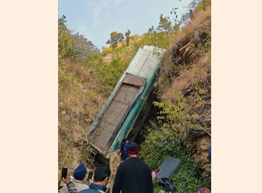According to official sources, the accident took place near Shilapani on the Bhikiyasain-Vinayak-Jalali motor road. The bus was travelling from Bhikiyasain to Ramnagar and had departed from Dwarahat at around 6 a.m.