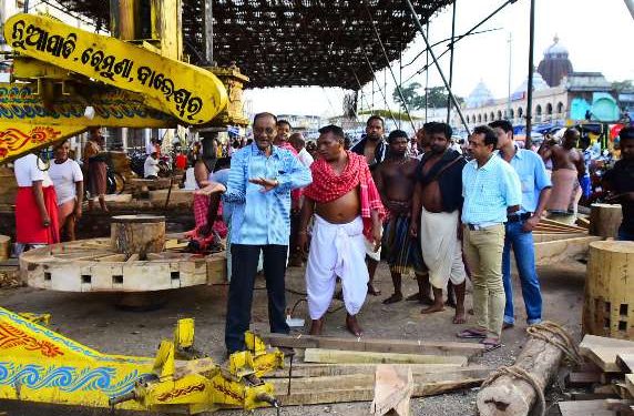 Puri: Shree Jagannath Temple Administration (SJTA) chief administrator Pradeep Jena Thursday visited the Rath Yard on the Grand Road here and took stock of the chariot construction for the upcoming car festival.