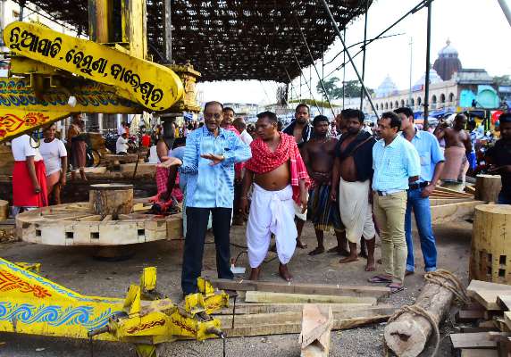 Puri: Shree Jagannath Temple Administration (SJTA) chief administrator Pradeep Jena Thursday visited the Rath Yard on the Grand Road here and took stock of the chariot construction for the upcoming car festival.