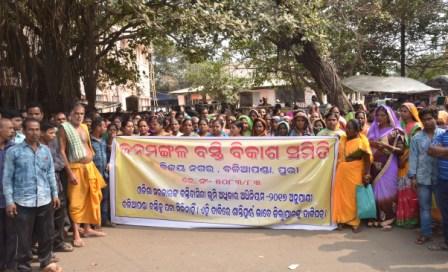 Puri: Hundreds of residents of Janamangal slum at Baliapanda Bijaynagar Tuesday held a demonstration in front of the District Collector’s office here seeking land deeds.
