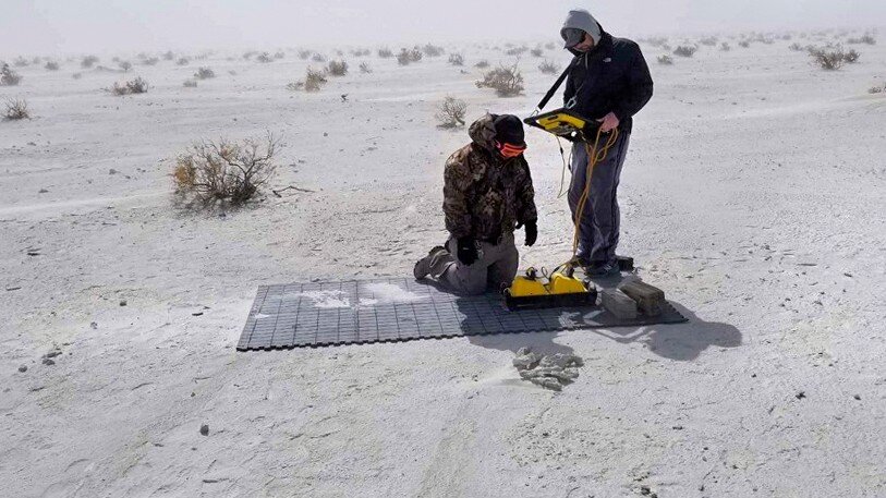 The sensor – a kind of antenna – is dragged over the surface, sending a radio wave into the ground. The signal that bounces back gives a picture of what’s under the surface.