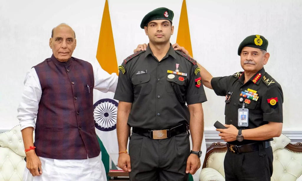 “Lt Col (Hony) Neeraj Chopra embodies the highest ideals of discipline, dedication and national pride, serving as an inspiration to generations within the sporting fraternity and the Armed Forces alike,” Singh said.