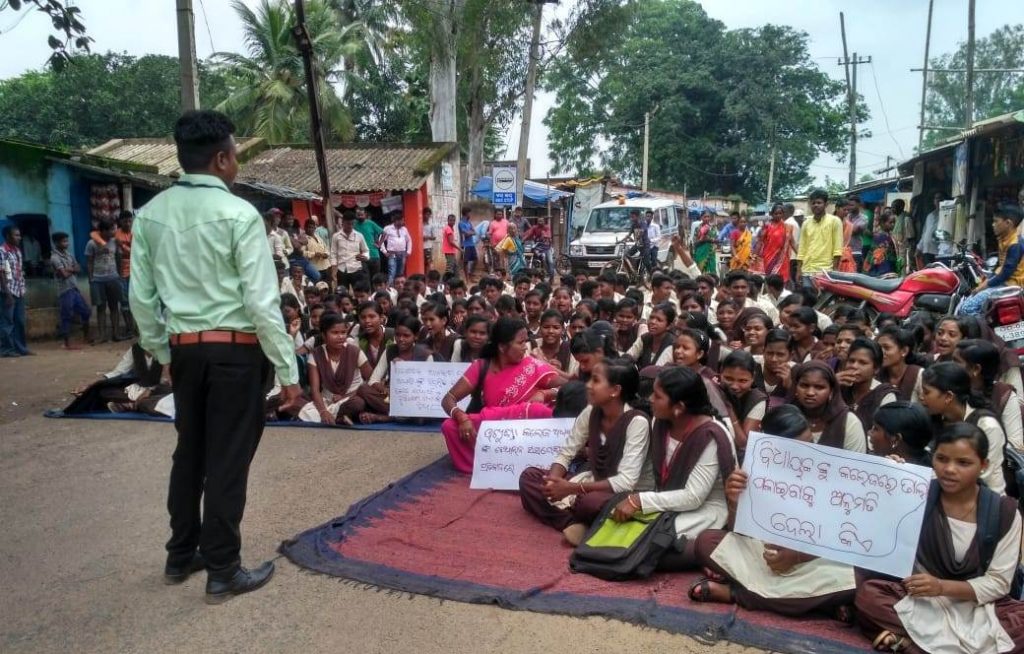 The agitated students who held placards in hand also blocked the Baunsuli-Champua road at Ukhunda in protest.