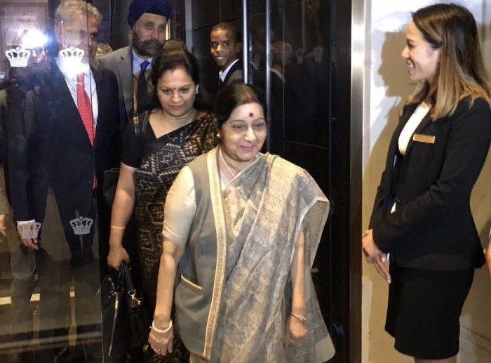 At the interaction, Ms Swaraj exchanged views to strengthen international cooperation and tackle regional challenges, including reform of the UN Security Council.