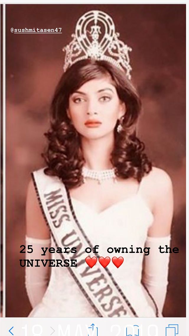 Mumbai: Actress Sushmita Sen, who made India proud 25 years ago by becoming the first Indian woman ever to win the Miss Universe crown, took a trip down memory lane on social media Tuesday.