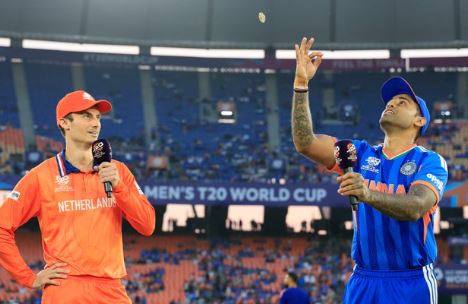Ahmedabad: India captain Suryakumar Yadav won the toss and opted to bat against the Netherlands in their T20 World Cup Group A clash, here Wednesday.