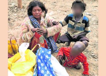 Rourkela: A widow and her two children, one aged around two and the other five, are surviving on leftover food ...