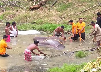 Sambalpur: The ailing tusker that had been stuck in slush at Papalhara village under Padiabahal range in Sambalpur for the last ...
