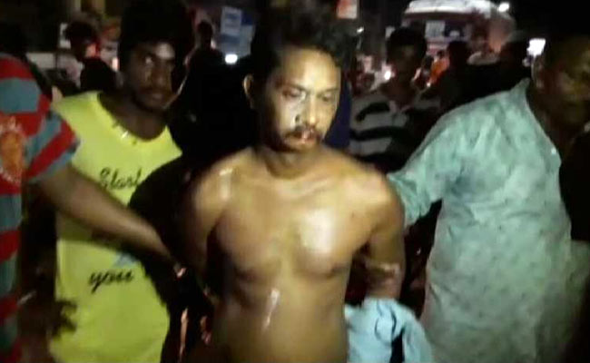 A video of the incident, captured by passers-by in Eluru town of West Godavari district, shows the 38-year-old man being made to walk on a busy road, in full traffic.