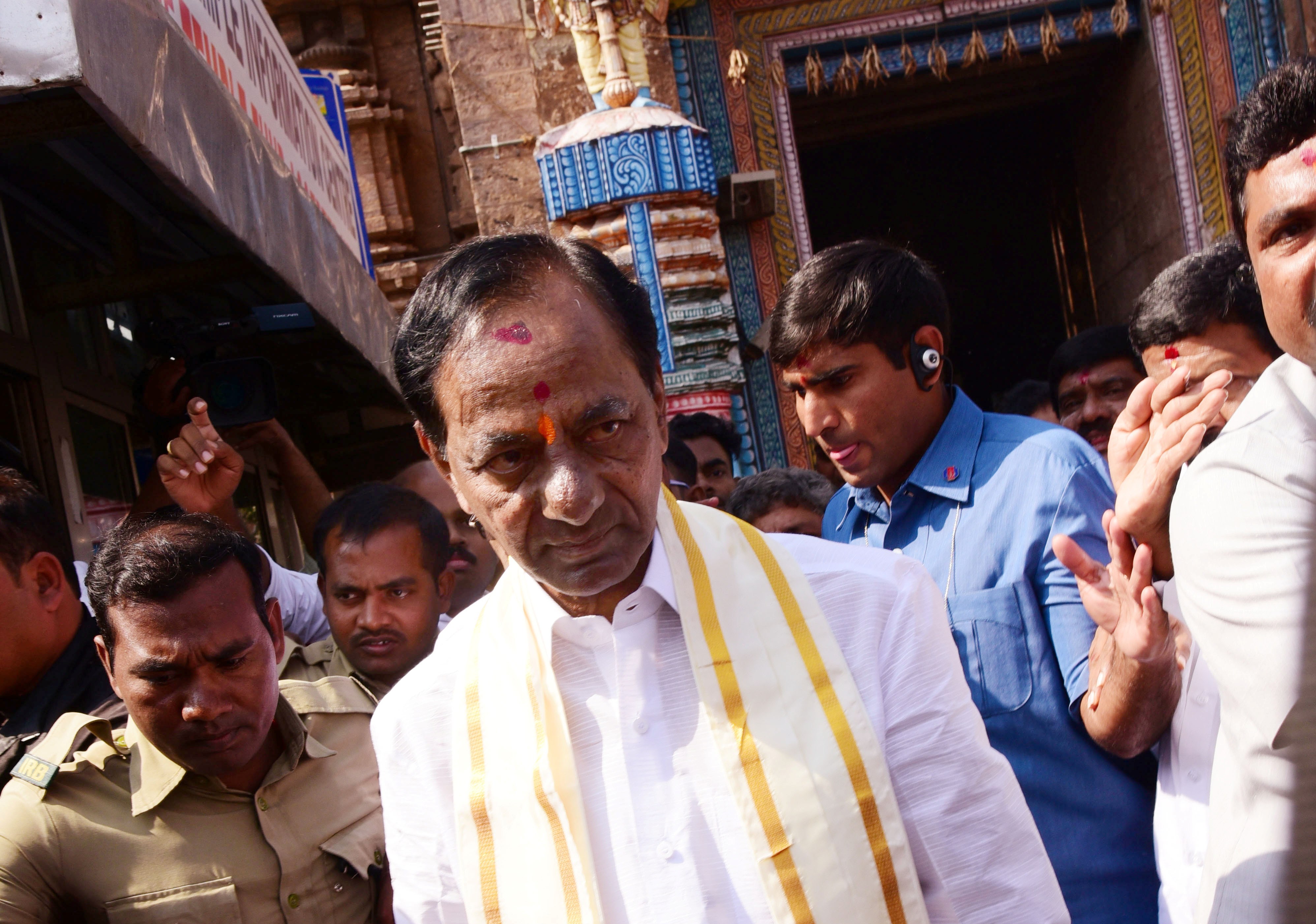 It was around 11am when the Telangana Rashtra Samithi (TRS) president, along with his wife Shobha, and a few political leaders and senior officials from Telangana, reached near the Lions’ Gate of the 12th century shrine amid tight security.