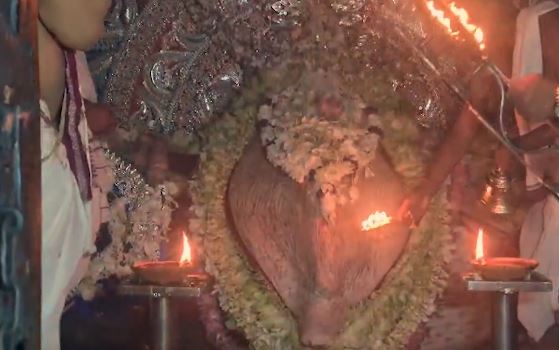 “On the day of Mahalaya, the Goddess adorns ‘Dhabalamukhi Besha’, also referred to as ‘Ganga Darshan’. It takes more than six hours to adorn the deity in a white incarnation. Goddess Samaleswari will remain in ‘Dhabalamukhi Besha’ till Tuesday afternoon,” said president of Samaleswari Temple Trust Board, Sanjaya Babu.