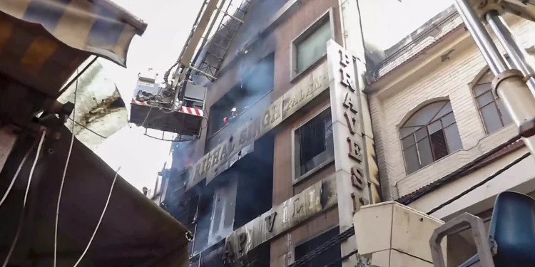 Visuals from the scene showed thick plumes of black smoke billowing out of the building and rising into the sky, with flames engulfing parts of the structure as firefighters battled the blaze in the congested market area.