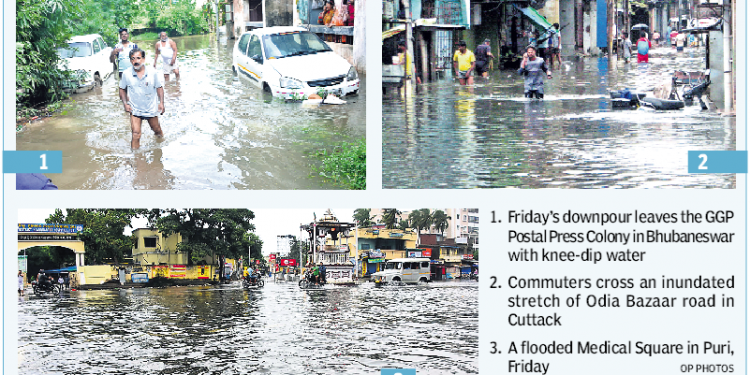 Cuttack/Puri/Bhubaneswar: Heavy rainfall, let loose by cyclone Titli since Thursday, threw life into a tailspin in Bhubaneswar, Cuttack and Puri Friday.