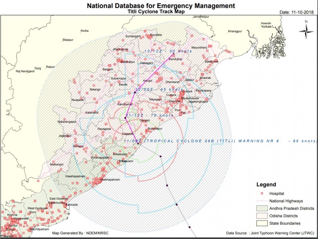 According to a report by the IMD, Cyclone ‘Titli’ made landfall near Palasa with an estimated maximum sustained surface wind speed of 140-150 kmph gusting to 165 kmph. The system is now moving northeastwards towards Gangetic West Bengal after crossing parts of Rayagada and Kandhamal before weakening gradually, it said. It is likely to move northwestwards and then re-curve northeastwards towards Gangetic West Bengal. It is likely to weaken gradually and become a deep depression by mid-night by Friday morning. An hour after the landfall, Gopalpur reported surface wind at 126 kmph, Kalingapatanam in Andhra Pradesh recorded a wind speed of 56 kmph. Director of Meteorological Centre Bhubaneswar H R Biswas said the “very severe cyclonic storm” is being monitored by the coastal Doppler Weather Radars at Visakhapatnam, Gopalpur and Paradip.