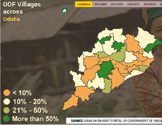 The latest data claims that 19 out of the 30 districts in the state have sanitation coverage between 30 and 60 per cent. The ministry, on the other hand, is painstakingly planning to make Odisha ODF by the end of 2018.