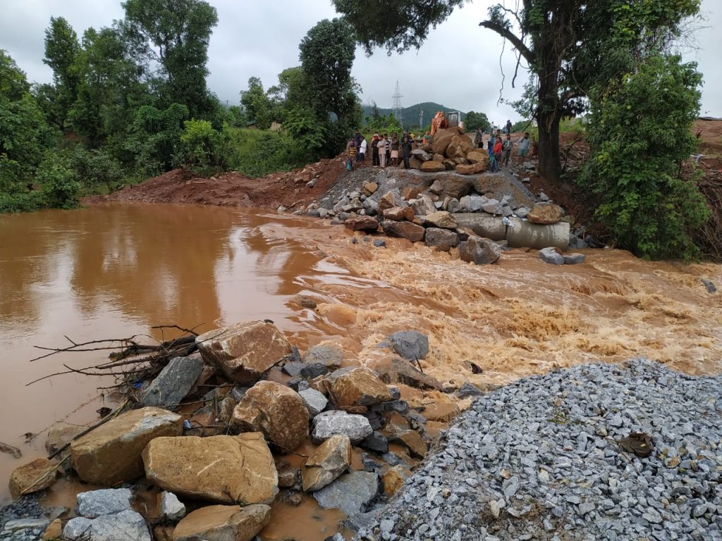 Communication lines were disrupted as a temporary bridge was washed away in a flash flood owing to torrential rains triggered by a low pressure area.