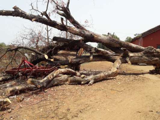 According to locals, a tamarind tree fell due to gusty surface winds. This caused a road blockade. Locals tried to remove it, but faced difficulty. Then they called the firemen.