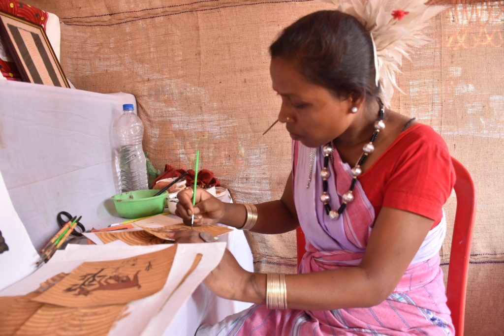 Bande Rao, a tribal artisan from Jharkhand, exhibited a large section of Adivasi clothes as well as bows and arrows. He said, “We have actually displayed our lifestyle before everyone. People are buying clothes based on our textiles. They are even buying bows and arrows for home decor. Even our Patti Chhatri from Goongu leaves and wooden sticks is attracting buyers. This is a huge reward for our hard work.”